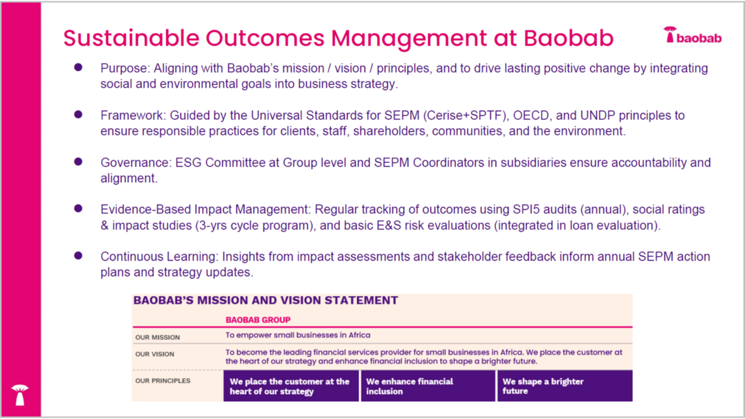 On November 14, Cécile Lapenu moderated a panel session to share the latest advancements from investors and FSPs in concrete outcomes management to secure customer protection, guide women empowerment, and focus on climate resilience. Approximately 60 participants attended the session, where speakers shared innovative practices and inspiring initiatives in collecting and using the voice of the clients to make informed decision for strategy and operations.